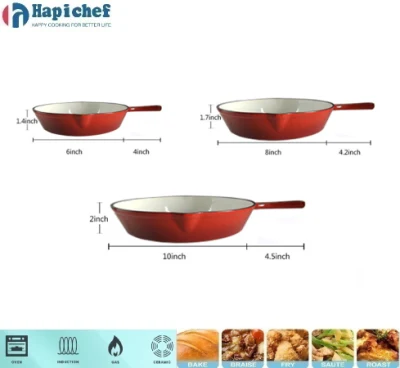 6 Inch 8 Inch 10 Inch Enamel Cast Iron Frypan Cookware Set