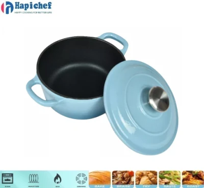 Емайлираният чугунен гювеч е един от най-продаваните продукти на Hapichef, а също така е и много търсен гювеч на пазара. дръжката му е сравнително голяма и е по-удобно да местите чугунената тенджера за супа, дори и с ръкавици. Може лесно да се контролира. Общите цветове на продуктите са червено и черно, разбира се, можем да персонализираме цветовете според вашите изисквания.