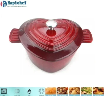 Venta caliente Untensils de cocina Olla de cocina en forma de corazón Utensilios de cocina de hierro fundido Cazuela Horno holandés