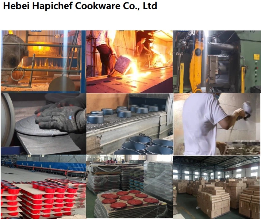 Hebei Hapichef Cookware Co., Ltd, ചൈനയിൽ നിന്നുള്ള കാസ്റ്റ് അയൺ കുക്ക്വെയറിന്റെ പ്രൊഫഷണൽ നിർമ്മാതാവും കയറ്റുമതിക്കാരനുമാണ്. ഞങ്ങളുടെ കാസ്റ്റ് അയൺ കുക്ക്വെയർ ഉൽപ്പന്നങ്ങളിൽ ഡച്ച് ഓവൻ, കാസറോൾ, ഫ്രൈയിംഗ് പാൻ, പോറ്റ്ജി പോട്ട്, ഗ്രിൽ പാൻ, റോസ്റ്റർ, സ്റ്റ്യൂ പോട്ട്, വോക്സ്, ബേക്കിംഗ് ഡിഷ്, ഗ്രിൽ പ്ലേറ്റ് തുടങ്ങിയവ ഉൾപ്പെടുന്നു.
