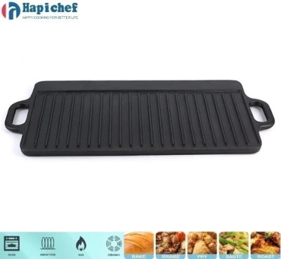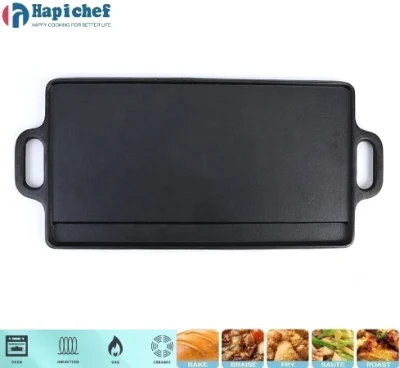 Outdoor Camping Cookware Pre-Seasoned Cast Iron Square Griddle Grill Pan